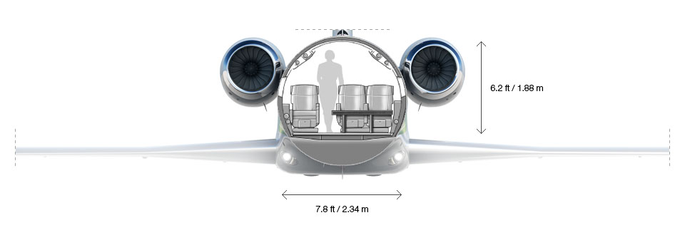 達(dá)索獵鷹2000S公務(wù)機(jī)機(jī)身寬度和客艙高度