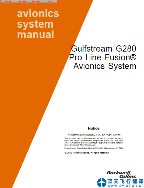 藍(lán)天飛行翻譯公司承接大型公務(wù)機(jī)公司的灣流G280 Pro Line Fusion 航空電子系統(tǒng)手冊翻譯任務(wù) G280 Pro Line Fusion Avionics System Manual Translation