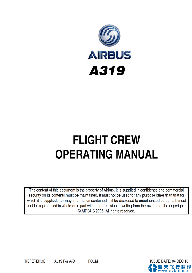 承接2018年12月4日版本空客公務(wù)機ACJ319飛行機組操作手冊(FCOM FLIGHT CREW OPERATING MANUAL)和快速檢查單(QRH QUICK REFERENCE HANDBOOK)翻譯任務(wù) 04 DEC 18 ACJ319 FLIGHT CREW OPERATING MANUAL and QRH QUICK REFERENCE HANDBOOK Translation