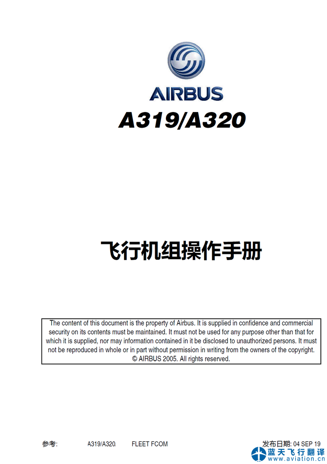 北京藍天飛行翻譯公司完成航空公司45架空客A320 FCOM、AFM和FCTM翻譯任務(wù) 04 SEP 19 A320 FLIGHT CREW OPERATING MANUAL, QUICK REFERENCE HANDBOOK and AIRPLANE FLIGHT MANUAL Translation