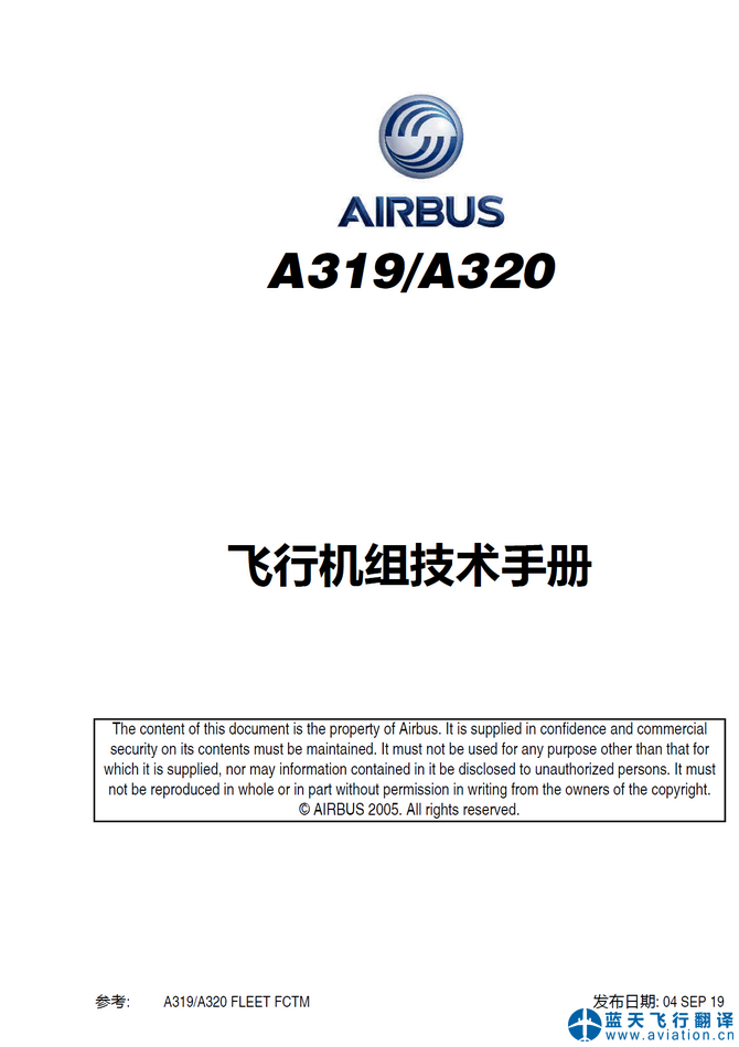 本次翻譯的A320飛行手冊包含45架飛機、320-214和319-115兩個機型,手冊包含有A320飛行機組操作手冊(FCOM FLIGHT CREW OPERATING MANUAL)、A320飛機飛行手冊(AFM AIRPLANE FLIGHT MANUAL)和A320飛行機組技術(shù)手冊(FCTM FLIGHT CREW TECHNIQUES MANUAL),版本為2019年9月4日。