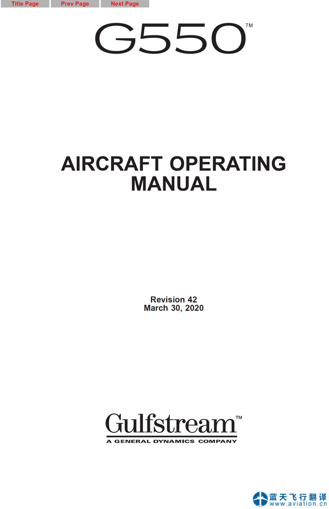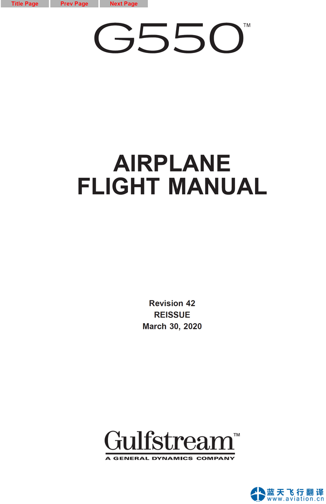 北京藍天飛行翻譯公司完成大型公務機公司的2020年3月30日,第42版灣流G550全套飛行手冊翻譯任務 G550 Flight Manual Translation