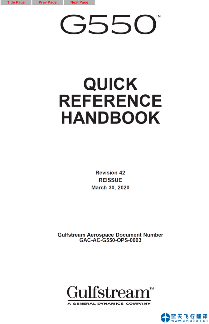 本文鏈接地址:完成2020年3月30日版本灣流G550全套飛行手冊翻譯任務