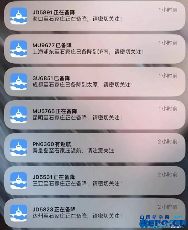 網(wǎng)傳石家莊機(jī)場(chǎng)多個(gè)航班返航或備降,機(jī)場(chǎng):確有臨時(shí)空中管制,已恢復(fù)正常